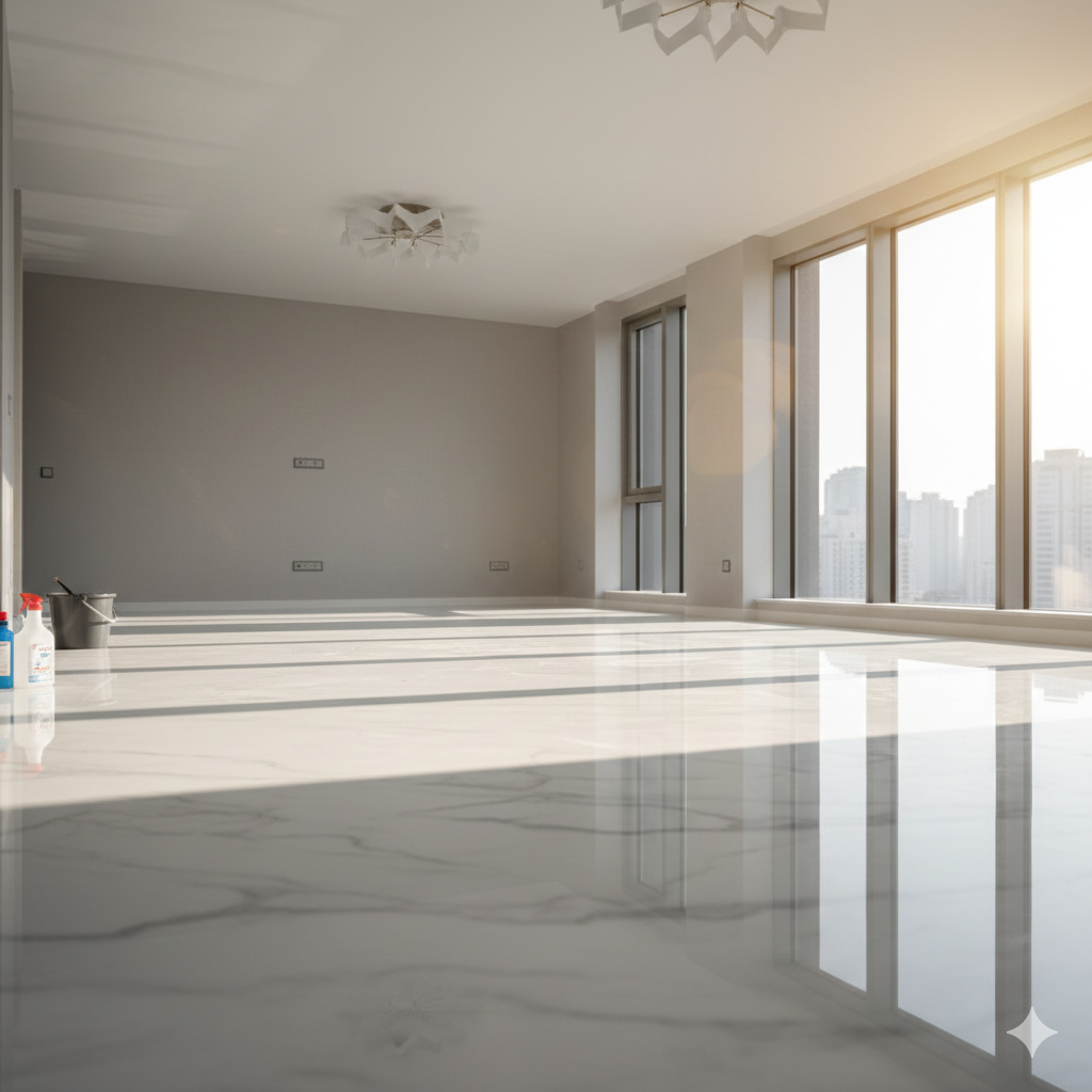 Recuperação de brilho e remoção de incrustações em porcelanatos, pedras e cerâmicas.